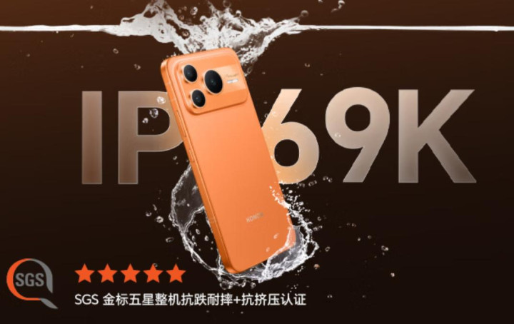 该机支持80W快充,27W有线反向充电,以及IP68+IP69+IP69K级防尘防水,还通过了SGS金标五星整机抗跌耐摔+抗挤压认证。